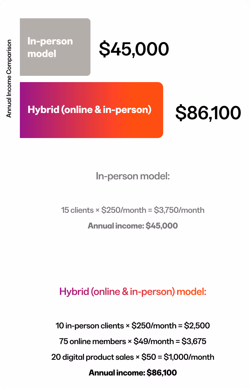 Replace the uncertainty of client schedules with steady online revenue. Kajabi creators turn one-time sessions into dependable monthly earnings through bundled digital offers.
