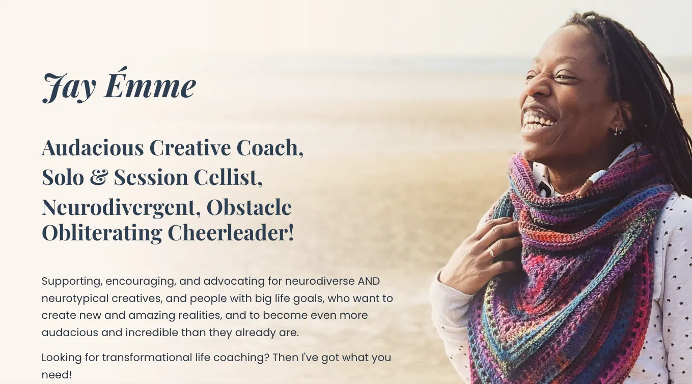 In the colorful landscape of music and coaching, Jay Émme has crafted herself a unique melody. Based in the UK, she weaves her creativity as both a professional solo cellist and a neurodivergent life coach - she’s even been featured on Netflix! Focusing on musicians and creatives — from the ones who create beautiful melodies to ones who knit warm tapestries — Jay believes in helping individuals set and smash their goals, turning dreams into reality.