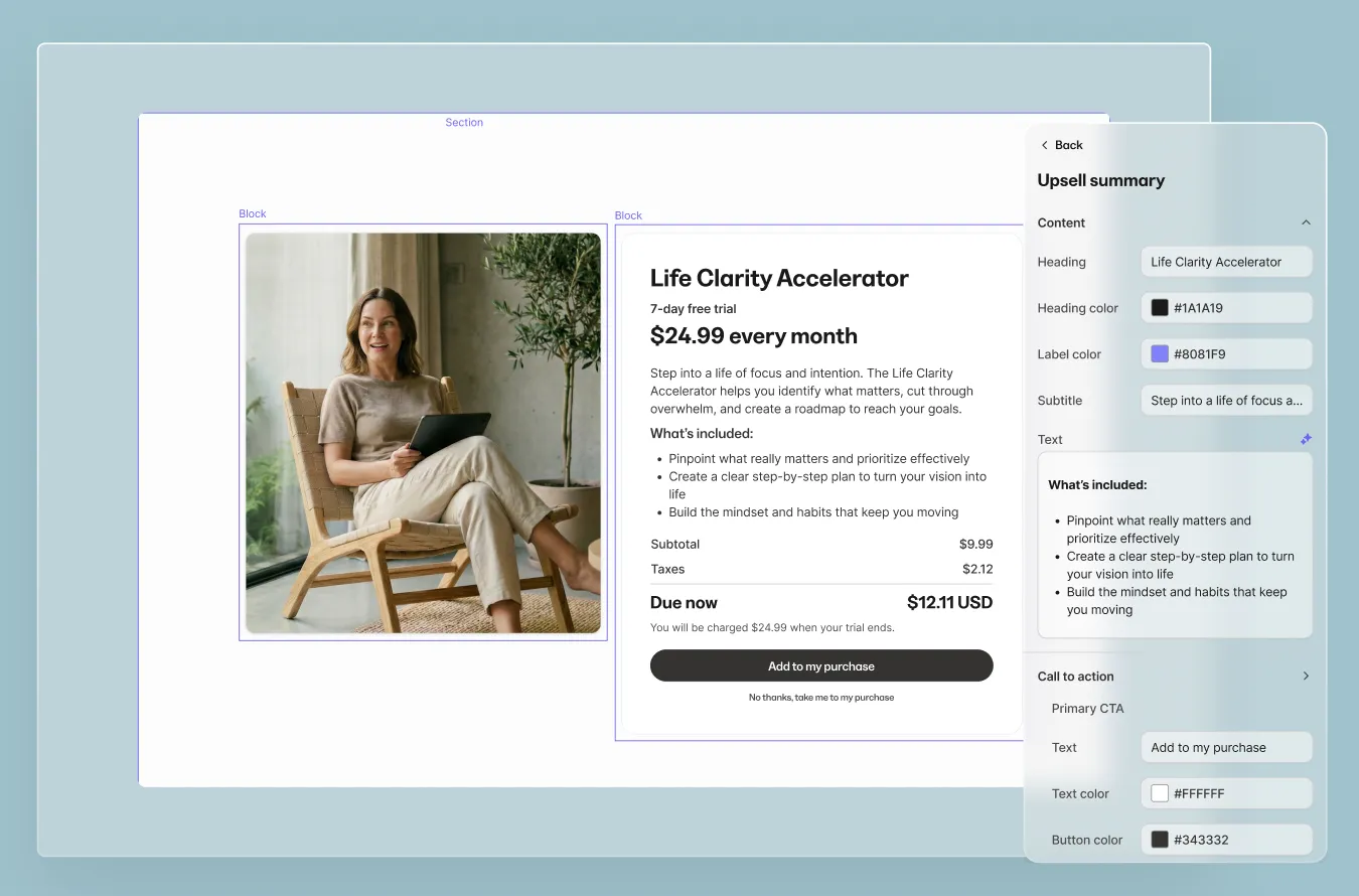 What this means for you: Create professional post-purchase offers that feel like part of your brand, not an afterthought. Build once, reuse across multiple offers. Turn one-time buyers into higher-value customers with offers presented at the moment when trust and momentum are highest.