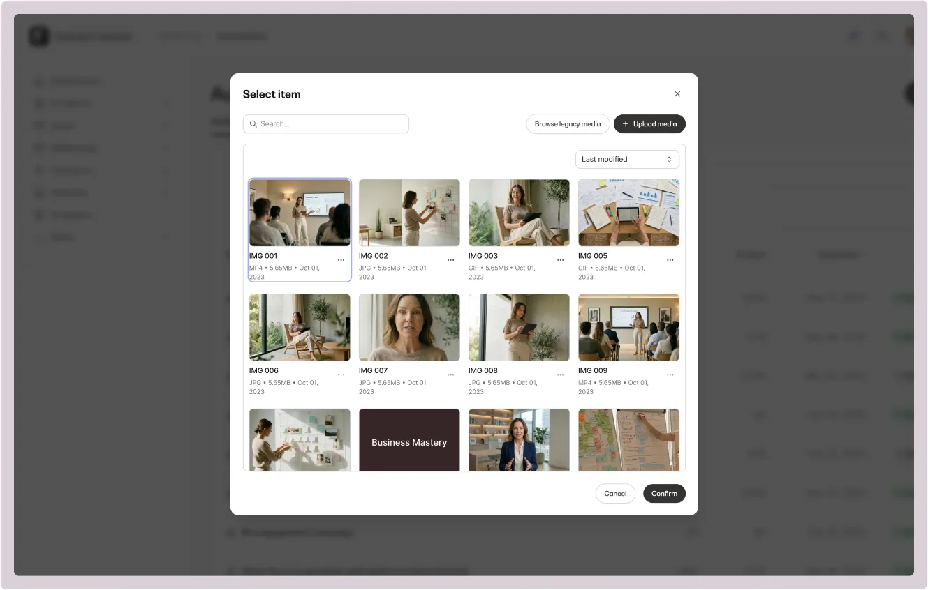 What this means for you: Upload once, use everywhere. Organize your content library the way you think, not the way the platform forces you to. Save time by reusing video content across courses, posts, emails, and landing pages without re-uploading or searching through scattered libraries.