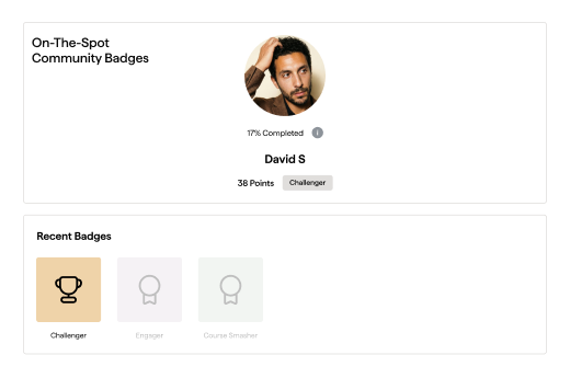 Instant Community Badges Recognize members in real time with on-the-spot badges that reinforce progress, status, and momentum. Visit any member's profile and manually award a badge to celebrate contributions, milestones, or achievements.